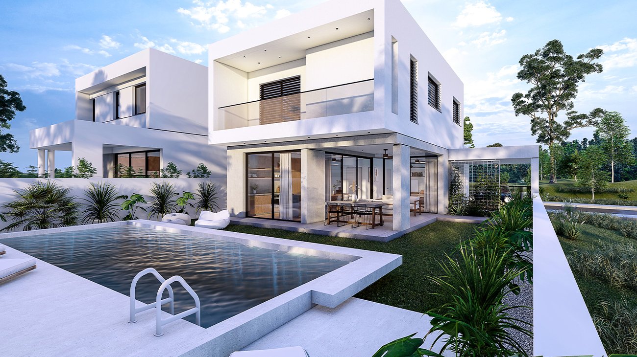 Η κατοικία 1 αποτελείτε από 4 υπνοδωμάτια, 1 δωμάτιο γραφείο / ξενώνας, , 3 μπάνια (ensuite master bathroom), 3 βεράντες , διπλός χώρος στάθμευσης , 181 τ.μ. εσωτερικοί χώροι, 3 τ.μ. αποθήκη και 302 τ.μ. εμβαδόν οικοπέδου.