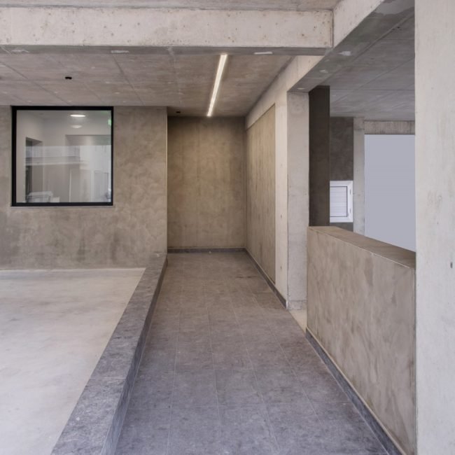 Η πολυκατοικία αριθμεί έξι διαμερίσματα. Οι δύο πρώτοι όροφοι αποτελούνται από δύο δυάρια και ο τρίτος από ένα δυάρι και ένα μονάρι.